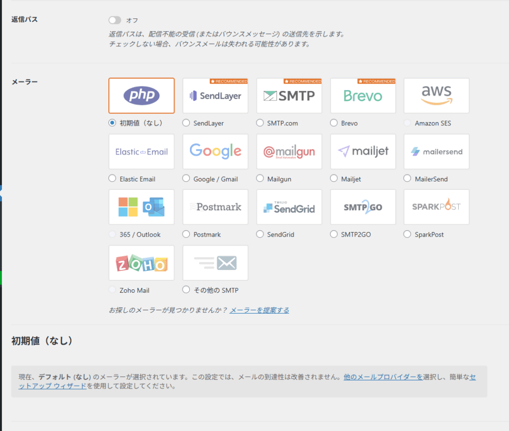 調べてみると「SMTP設定」をしてみるようにと…