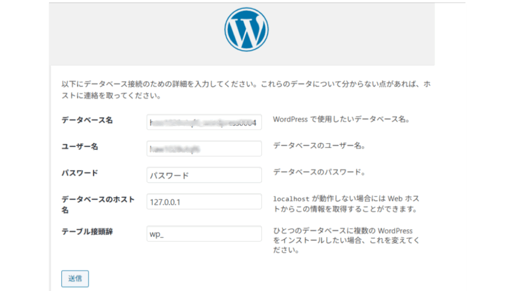 そのまま操作画面でデータベースの紐づけを行ったら、あとはWPサイトアカウント情報を登録してサイトにアクセスできる状態になりますが・・・