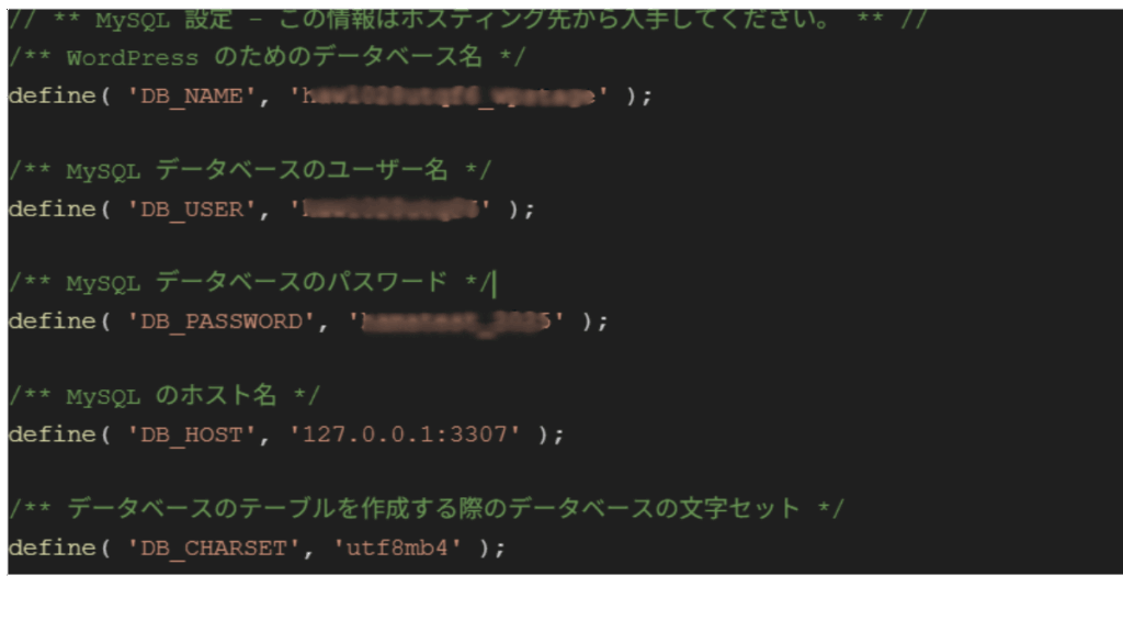 define( ‘DB_PASSWORD’, ‘◎◎’ );