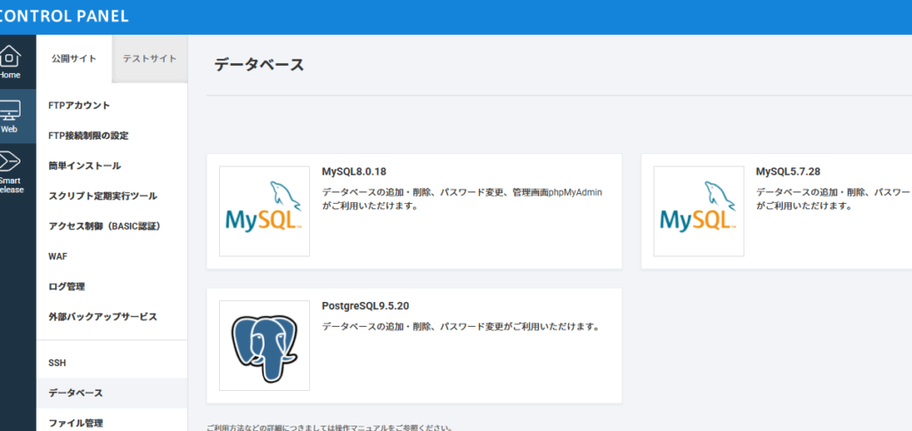 データベース紐づけ画面直前で、「あ、DB名とかPWなんだっけ…」となる。他のサーバーだとデータベースって名前をつけたりするけど、CPIは知らない間にデータベースができている感じです。