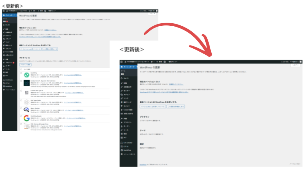 一つ一つ更新を行ったらサイトを見返して、不具合が出ていないかを確認します。